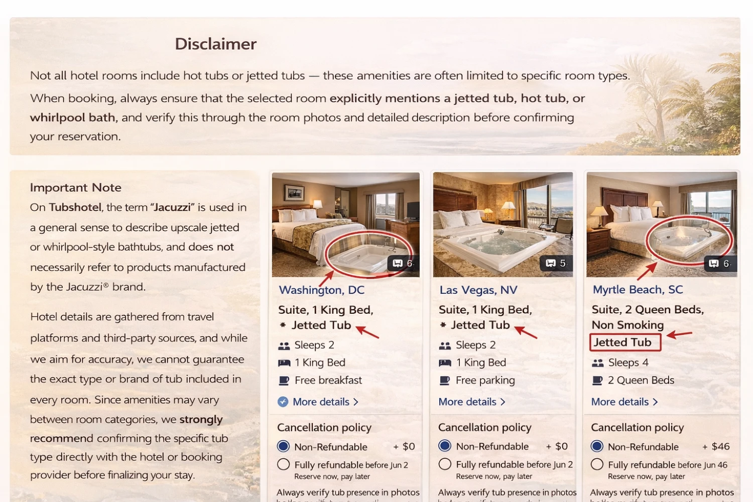 Tubshotel helps travelers discover hotels, suites, and romantic stays with in-room tubs, spa tubs, whirlpools, and other premium amenities.